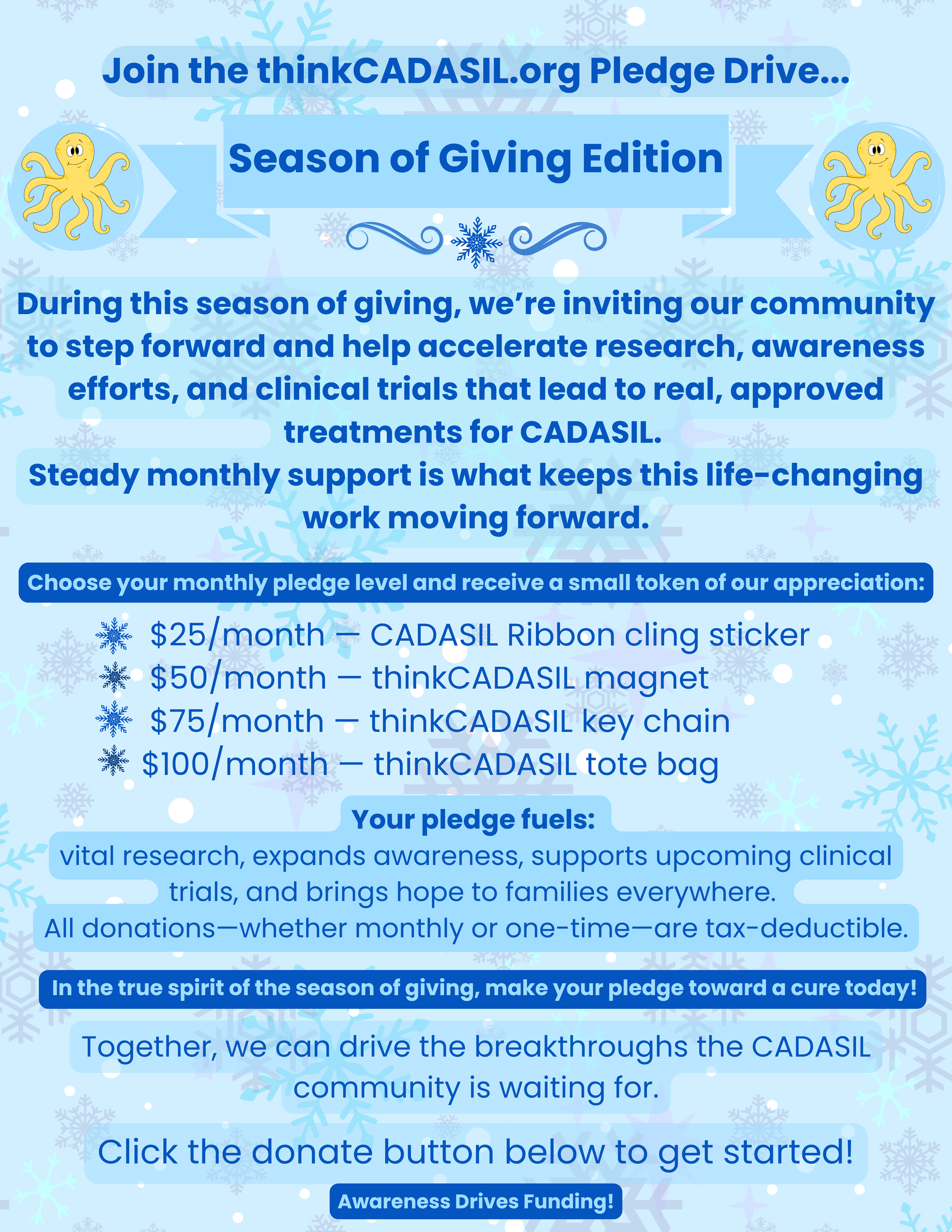 ** thinkCADASIL.org is a registered 501(c)(3) nonprofit organization. All contributions are tax-deductible as permitted by law. **